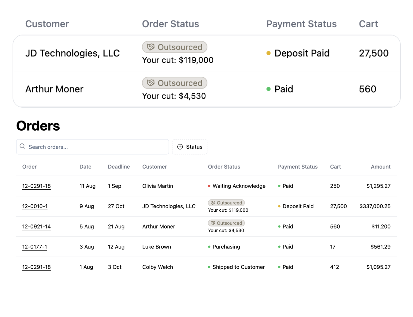 Setup your lead time, MOQ and volume-based prices in Flexchain to give automated quotes to your customers. Flexchain automatically manages over 25 pricing add-ons that calculate the price, MOQ and lead-time for you (rush orders, below MOQ surcharge, express delivery, color-based pricing, etc.).